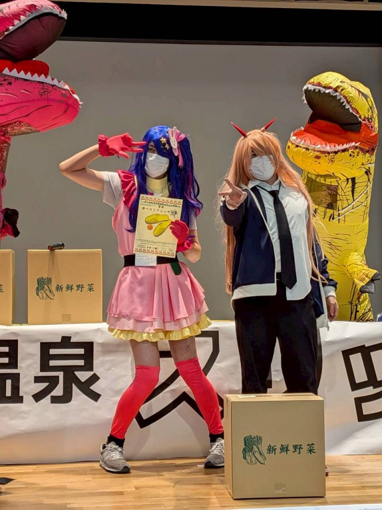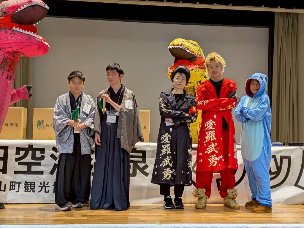 筆者がどうしても賞をあげたかったのが、温泉浴衣にヘアバンドと顔パックの姿で便所スリッパを振り回す姿があまりにも面白かった「とにかく明るい四十肩」チーム。空の湯賞、おめでとうございます。会場全体が大いに盛り上がりました。来年も是非ご参加下さい!