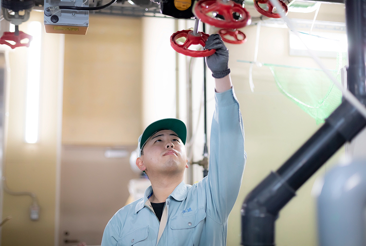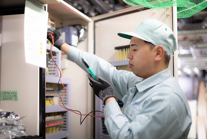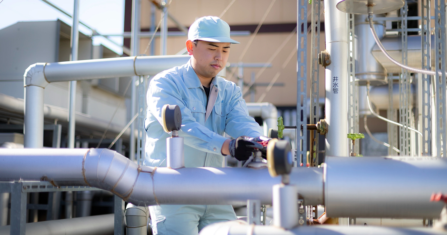 お客様の「建物」を維持管理する仕事を行っています。建物にまつわる、給水設備、空調設備、消防設備などの巡回点検をしています。大まかな流れとしては、出社後に道具などの用意をしたら各現場に移動して業務をスタート。さまざまな現場に足を運ぶので、場所によっては、お昼に近くの美味しいお店に行ったりできるのが密かな楽しみです。