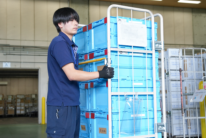 私は現在、成田空港内にある免税店やお土産物店へ商品を配送する業務に携わっており、主にドライバーを担当しています。一日は朝7時30分に倉庫へ出勤することから始まり、トラックに荷物を積み込んでから朝礼を行います。その後、最初の荷物を成田空港まで運んでから倉庫に戻り、そこからは「倉庫で積み込み、成田空港で下ろす」という作業を荷物がなくなるまで繰り返します。